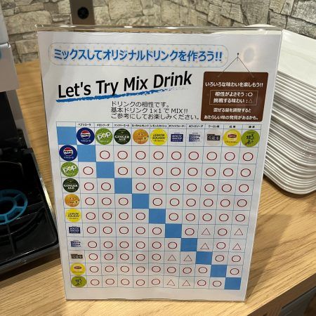 スペシャルブレンド豆、エメラルドマウンテン豆、キリマンジャロブレンド豆を使用した珈琲と、4種類の健康茶のほか、ドリンクバーでは様々なドリンクの組み合わせで自分好みのドリンクの作り方を提案してくれています。