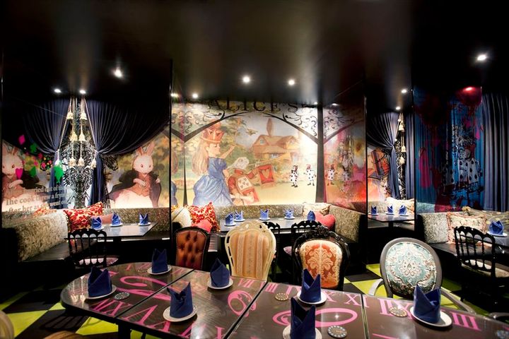 壁のいたるところににはアリスのアートグラフィックが施されていて、アリスの世界観を満喫できるパラレルワールドを演出しています。大切な人と過ごす時間、休日のリラックスタイムにぜひ訪れてみてくださいね。
