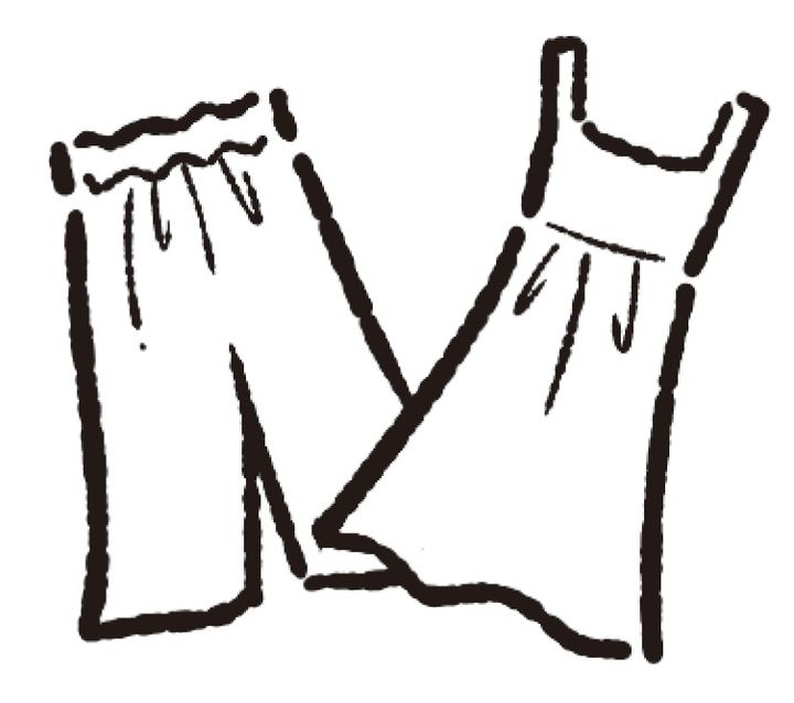 透け対策でキャミワンピやステテコを着用。ウエストにタオルを巻き、凹凸を潰しておくとさらに。