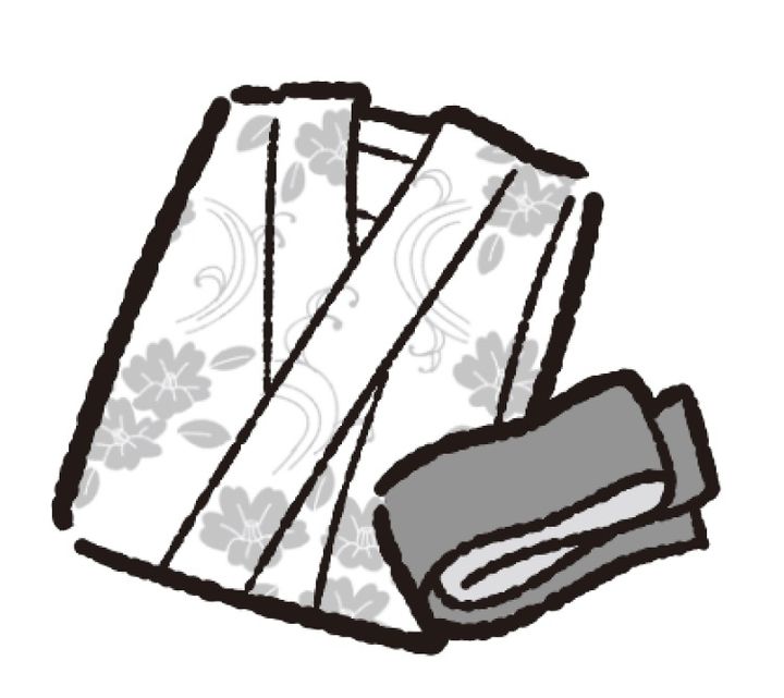 着丈を調整する際に使用。コーリンベルトがある場合は1本、ない場合は腰紐を2本用意して。