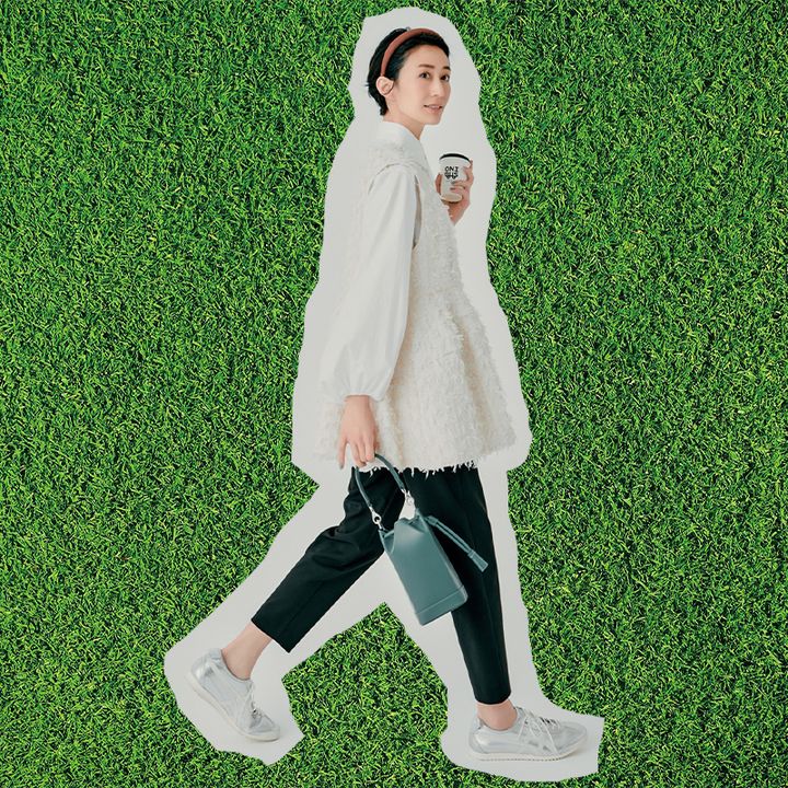 スニーカー¥16,500(オニツカタイガー/オニツカタイガージャパン お客様相談室)シャツ¥28,600(エッフェ ビームス/ビームス ハウス 丸の内)ジレ¥24,200(カデュネ)パンツ¥27,500(ハイク/ボウルズ)バッグ¥95,700(アールエスヴイピー/デ・プレ)カチューシャ¥26,400(アレクサンドル ドゥ パリ/アレクサンドルドゥ パリ GINZA SIX店)バングル¥36,300(ハイク/ボウルズ)