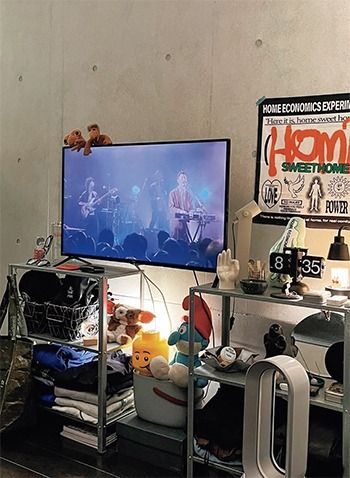 「PLAYFUL ONE ROOM」をコンセプトに、雑貨屋さんをイメージ。IKEAの棚を2つ並べてテレビ台がわりにし、雑貨やアパレルアイテムを配置しています。アイアン素材なので、カラフルなアイテムを引き立て適度に無骨さもあるので部屋の雰囲気にマッチ。シーズンに合わせて季節感をとり入れたりして、自分だけのセレクトショップのように。(takahashiさん・BIRTHDAYBAR PR)