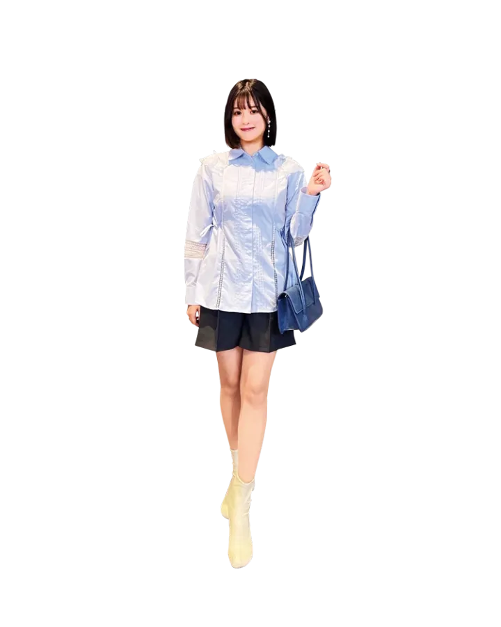 肩やそでのレースがポイントのシャツは20,000円くらいでした。透け感が春らしくて可愛い♡ シャツが華やかな分、3,000円くらいのショートパンツはシンプルに。しっかり脚を出して、女のコらしいけどヘルシーなコーデに!