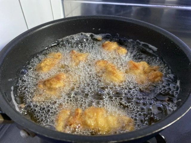 からあげならではのサクッとした衣を味わいたいときには、ぜひ油で揚げなおして食べてみてください。使用する油は、170℃にあたためておきます。凍ったままのからあげ5つに対して、約4分を目安に揚げていきましょう。