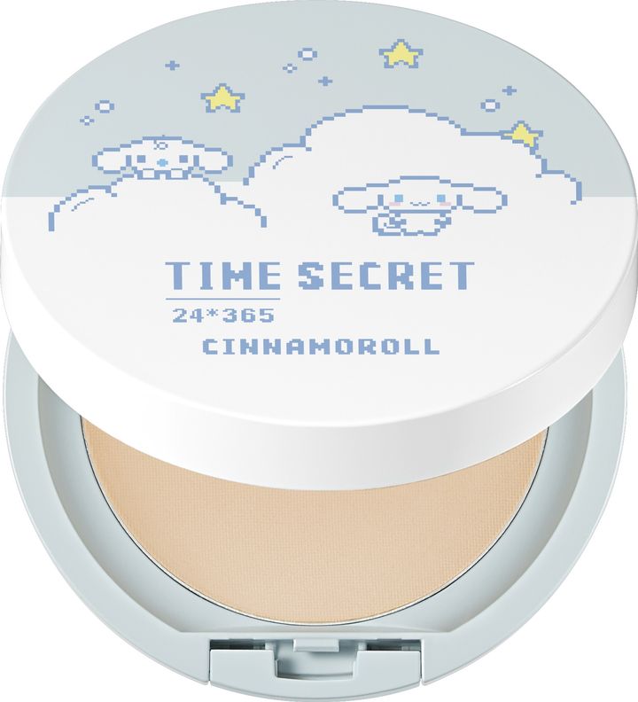 『タイムシークレット』がブランド10周年を記念して発売中の『タイムシークレット ミネラル 薬用プレストパウダー サンリオ シナモロールデザイン』は、パッケージにキュートなシナモロールが描かれた特別なデザイン。