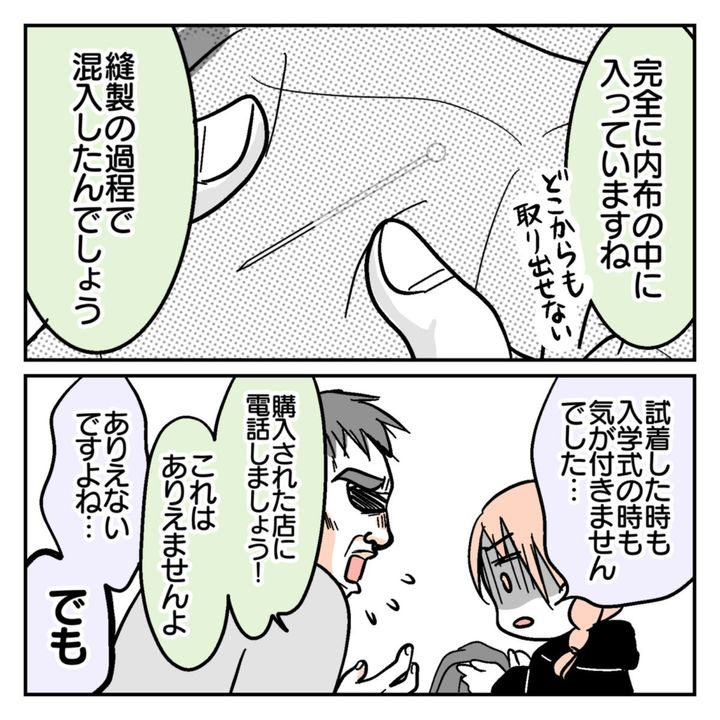 購入したばかりの制服にマチ針が混入していたという事件を描いた本作。危険を予期して防ぐことが難しい事例だったのではないでしょうか。