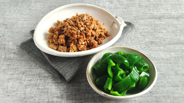 そこでわが家は、ピーマンに肉を詰めることをやめました。ひき肉を炒め、サッと塩ゆでしたピーマンにのせます。自分でトッピングする楽しさもあり、ピーマンとひき肉のバランスを自分好みに調節できるところもいいなと思っています。