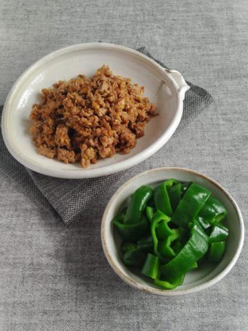 「ピーマンの肉詰め」は作るのが大変…と思うことはありませんか?そこでわが家は、ピーマンに肉を詰めることをやめました!ひき肉を炒め、塩ゆでしたピーマンにのせます。するとピーマンが苦手な娘に大好評。ピーマン嫌いな子にもオススメしたい一品です。