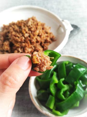 シャキシャキ食感のピーマンと、甘じょっぱいひき肉の組み合わせがちょうどいい!娘はさらに白米を合わせてスプーンに盛って、一口で食べています。ピーマンだけポリポリ食べられるくらい、ほんのり塩味のついたピーマンがおいしいので、ぜひ試してみてくださいね。