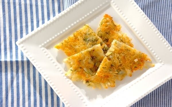 サンドイッチやハンバーグなど洋風のお弁当に入れたいのが、チリメンジャコを使ったガレット。ジャガイモやピザ用チーズなども使っているので食べ応えがありますよ。小さく切って、隙間おかずにするのもおすすめ。ピックを刺して行楽弁当にしてもオシャレですね。