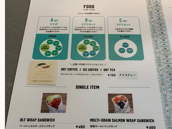 今回はランチに利用。 A/サラダのみ、B/サラダ+デリ、C/デリのみの3つのセットメニューがあり、ワンプレートの組み合わせをお好みで選ぶことができます。
