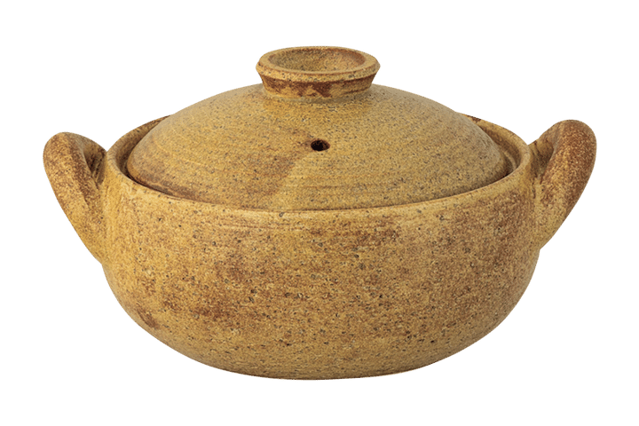 丸くて肉厚な土鍋はしっかり蓄熱し、火を止めた後の余熱で料理を美味しく仕上げる。食材にゆっくり熱を伝え、優しい味に。みそ汁鍋[大]¥14,300(長谷園) 問https://igamono.co.jp/