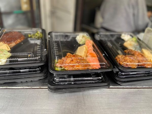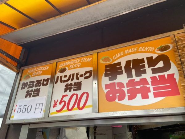 訪問したのは、平日の12時前でした。この日は雨が降っていましたが、若い方・子連れ・ご年配の方まで様々な年代の方が並んでいました。お弁当の種類は3種類のみハンバーグ弁当・お魚弁当・唐揚げ弁当です。500円から購入できます。