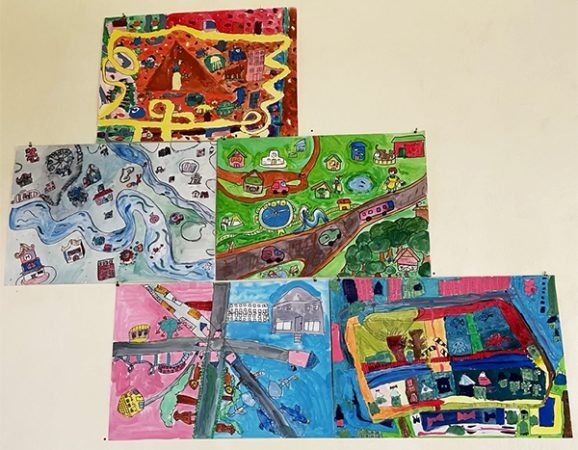 現代美術作家のオーギカナエさんは、田主丸にアトリエを構えて活動しています。絵画やインスタレーションの他、ワークショップなども多数。3年前から小学生の絵画教室“こどものアトリエ“も主宰していて、つい先日、こどものアトリエの展覧会が開催されていたので観に行ってきました。