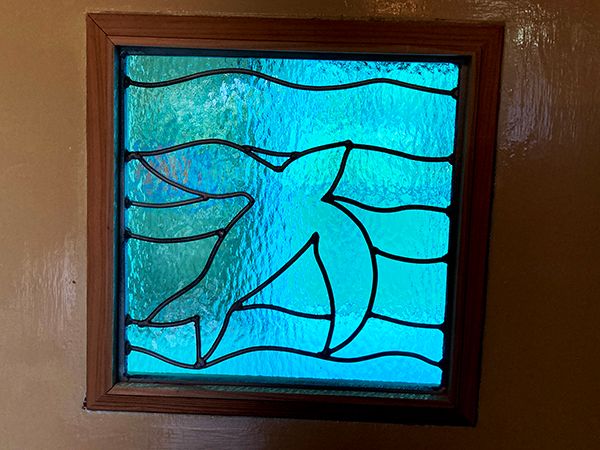 ドアの窓に埋め込まれたオリジナルのステンドグラスがかわいい!