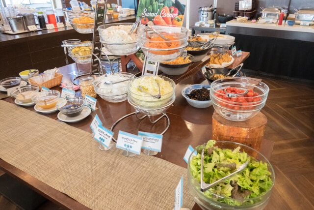 フレッシュな野菜の他、キャロットラペやスパゲティーサラダなどが並びます