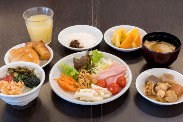 朝食は青森の食材や郷土料理を採り入れた和洋食ビュッフェで、6時30分から10時まで(L.0.9時30分)。