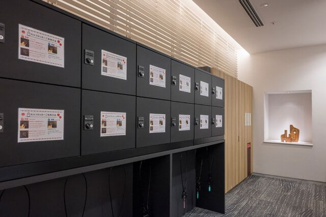 ロビーの一画にはセルフロッカーのコーナーがあって、宿泊者はチェックイン前やチェックイン後に無料で使えます。
