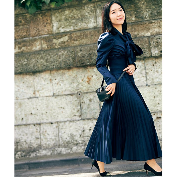 学校ママの【こなれネイビーコーデ】一枚で着映えるワンピで自分らしく!