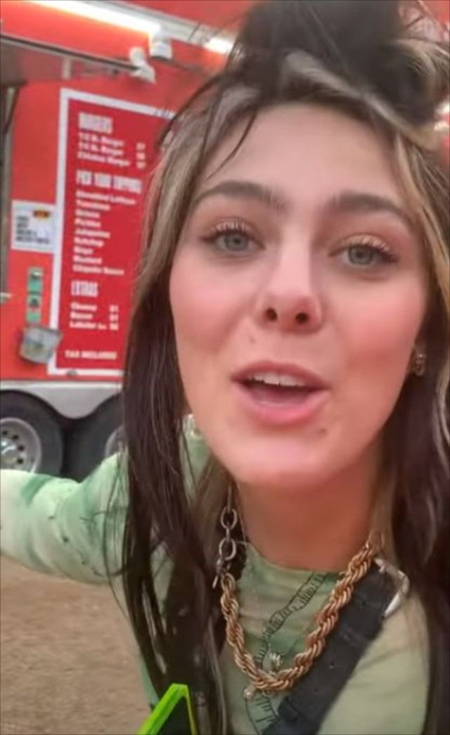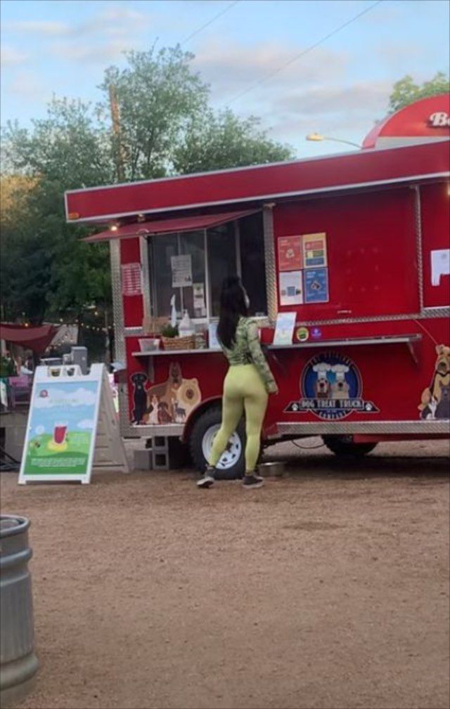 カメラに映る女性は、買い物をしたいフードトラックがあるようです。 興奮気味に話しています。