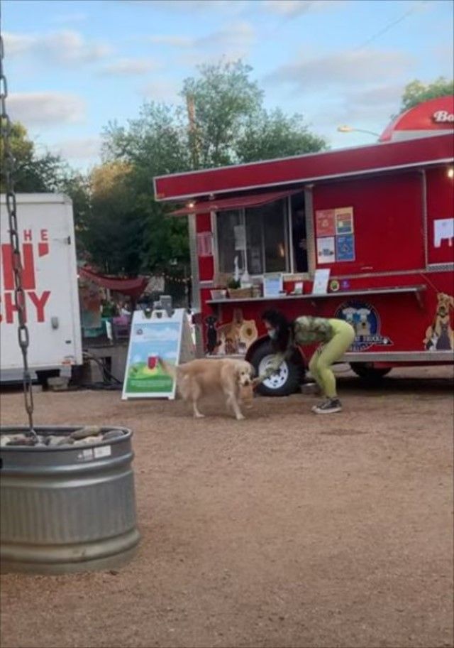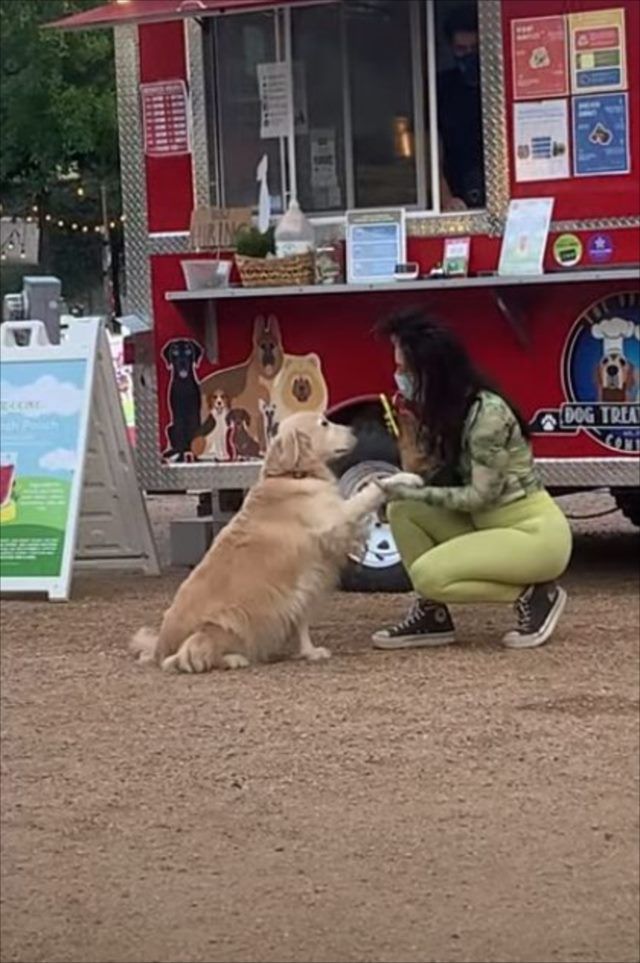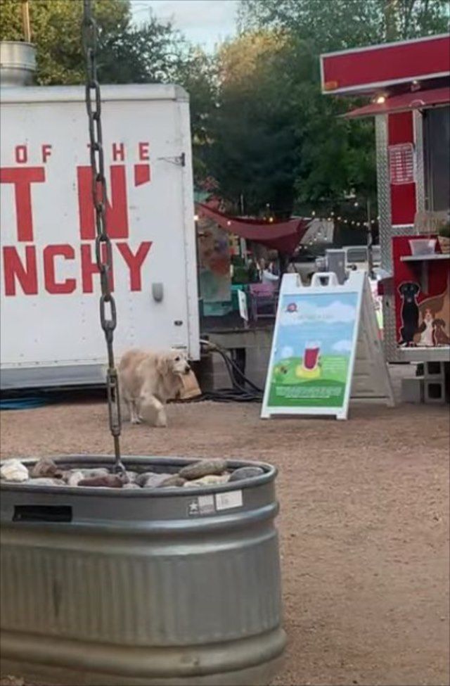 すると、食べ物を持ってきてくれたのは、なんとワンコ! 女性の姿をみつけると、一目散に持ってきてくれました。