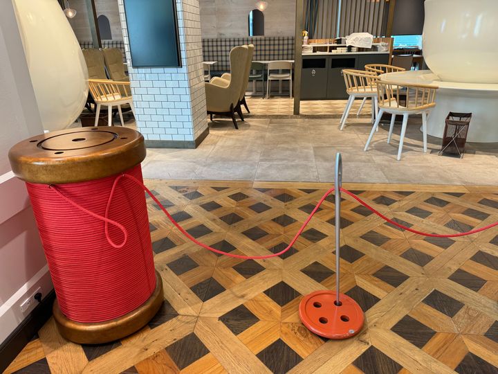 「SWEETS BANK」は団欒の象徴であるダイニングテーブルを13倍にスケールアウトし、まるで、こびとになった気分が感じられる非日常の空間。