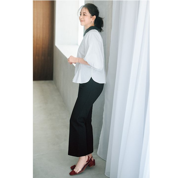ショーツ¥1,580(BAMBI WATER /ラングレー)ブラウス¥17,600(ドレステリア/ドレステリア 渋谷スクランブルスクエア店)パンツ¥14,000(バナナ・リパブリック)パンプス¥29,700(ツルバイ マリコ オイカワ)ピアス¥10,560(ラブ・エージェイ/ZUTTOHOLIC)バングル¥121,000(ウノアエレ/ウノアエレ ジャパン)