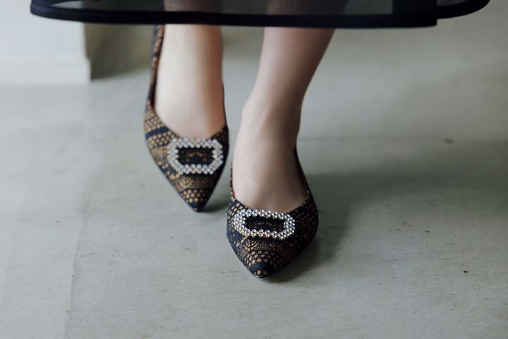 ベーシックカラーでまとめた着こなしの足元は、きれいめヒールだと地味見えしたり、逆にドレッシーすぎる印象に。今のイチ押しは、デコラなぺたんこ靴♡ ミニマルなモノトーンルックに肩リボン&レース靴で立体感を。ブラックレースにビジューを飾ったゴージャスなシューズもノーヒールならデイリーに使えて◎。