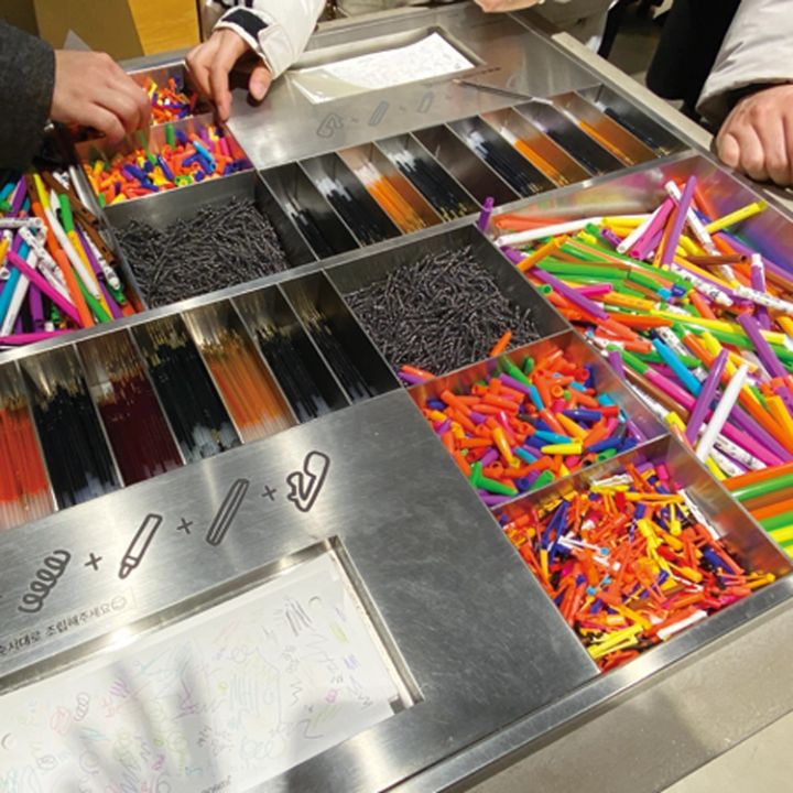 ここではカスタムボールペンが制作できます。ボディやペン先、インクなど好きな色を組みあわせてぜひ特別なお土産にどうぞ!1本500でお手軽なのもうれしい。