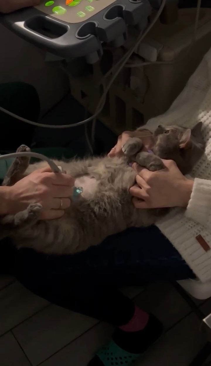 ご紹介する動画は、とある動物病院で撮影されたもの。 ネコが超音波検査を受けている時の映像です。