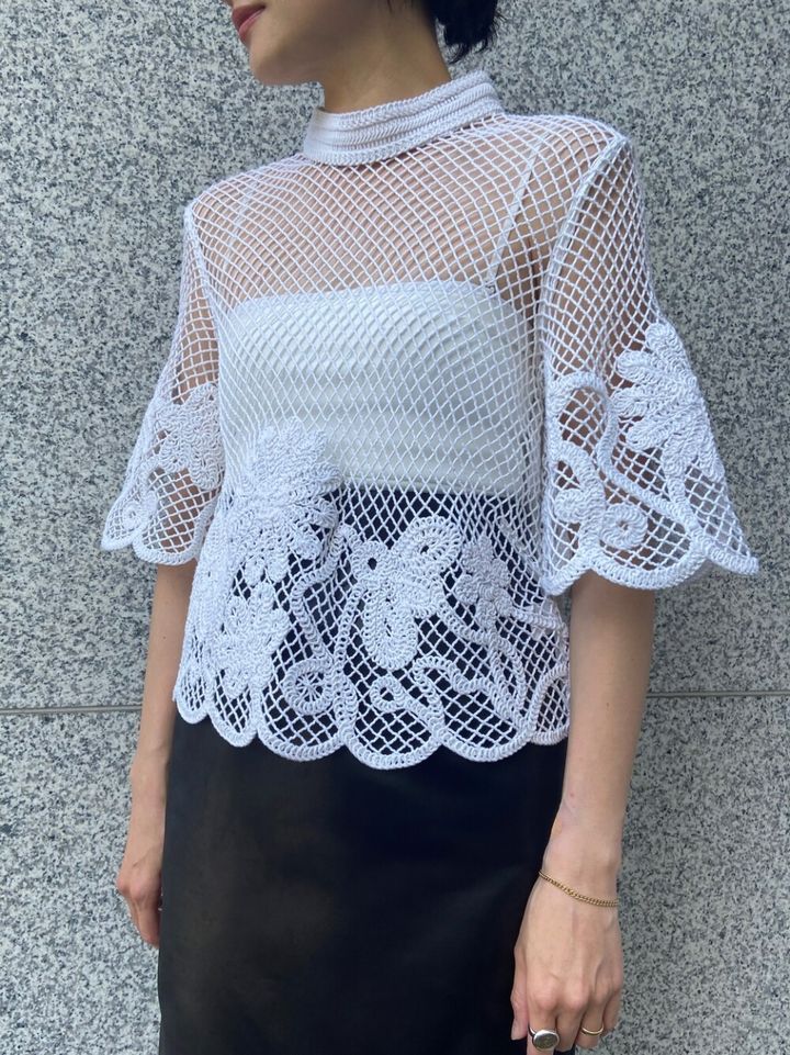 「ユナイテッドアローズで今季から取り扱いしているメルボルンのブランド、クレアのトップスです。どことなくノスタルジックな雰囲気を感じる立体感のあるニットトップスは夏の着まわしにも便利な1枚です」トップス¥85,800(クレア/ユナイテッドアローズ 丸の内店)
