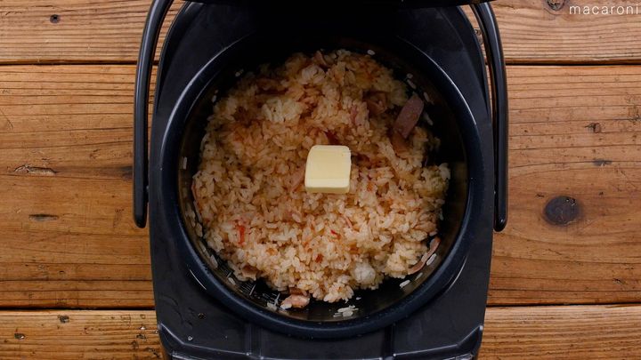 3: ふたを開けたらバターを加えてよく混ぜ合わせます。