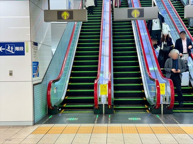 しばらく歩くと、エスカレーターが見えてきました。このエスカレーターを上がります。