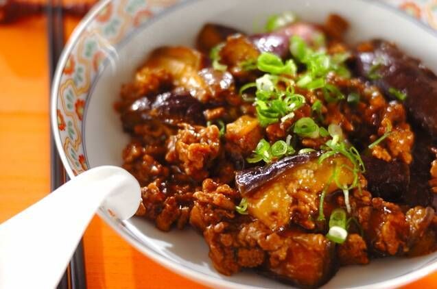 豚肉とナスを蒲焼き風の味付けで炒めた、ごはんのおかずにピッタリの甘辛味。タレは焦げないようよく混ぜながら火を入れましょう。