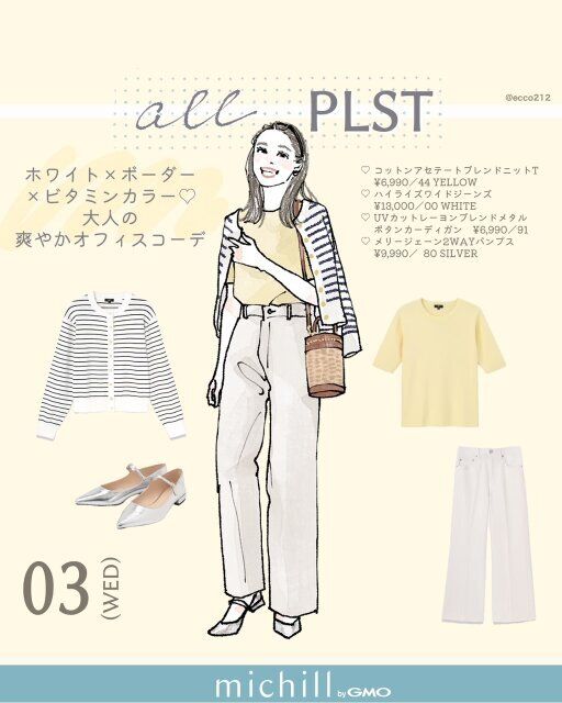 【ALL PLST】ホワイト✕ビタミンカラー✕ボーダー♡大人の爽やかオフィスコーデ