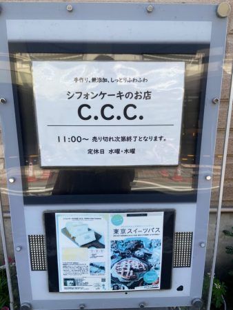 シフォンケーキのお店C.C.C.の絶品ふわふわシフォンケーキを食べてみてはいかがでしょうか??自分へのご褒美に・手土産・東京観光で足を運んでみては!!1時間で完売する日もあるので、C.C.C.の絶品ふわふわシフォンケーキを食べたい方は、オープンの時間に合わせて来店するのをオススメします。