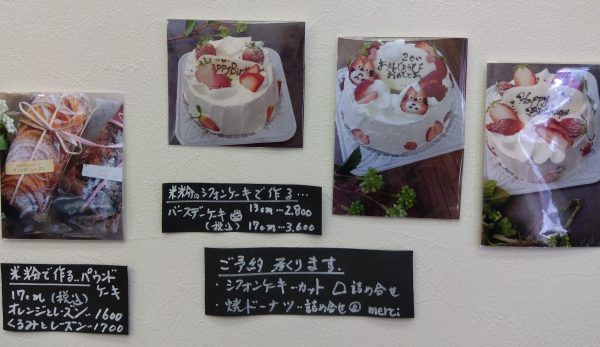 バースデーケーキ、パウンドケーキ、焼きドーナツの詰め合わせなど予約で☆ 3~4日までの予約になりますが、要相談&要予約で色々な米粉のスイーツを作ってもらえますよ。定休日でもお渡し可能だそうなので、色々と相談してみてくださいね。