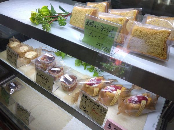 この日のショーケース☆ お一人で作っているので、ずらり~とは並んでいませんが甘さ控えめで、やさしい味わいの米粉スイーツがオイシイと評判なんですよ。