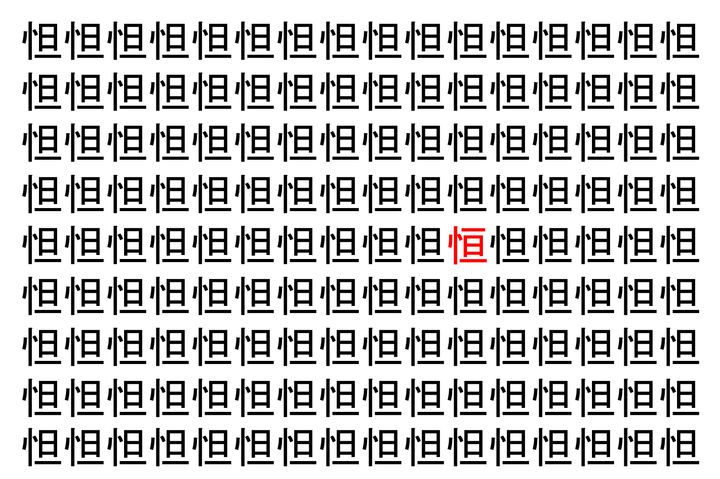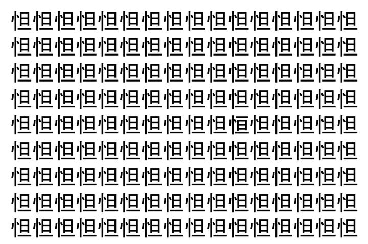 画像の中には、「怛」という漢字が縦に9行、横に16個並んでいます。 全部で144個となりますが・・・、そのうち1つは「異なる漢字」となってますよ!!