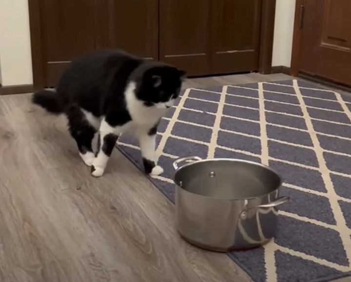 3. 雨漏りにびっくりする猫さん、音につられて体がビクッ!