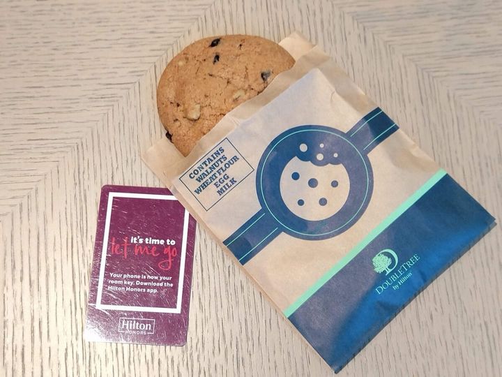 2023年1月に開業した「ダブルツリーbyヒルトン富山」。チェックイン時には、大きなアメリカンサイズのダブルツリー特製チョコチップクッキーのウェルカムスイーツが!
