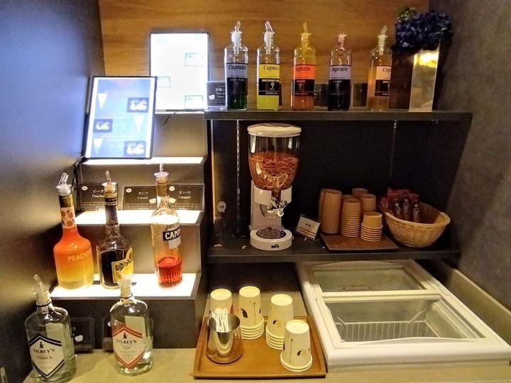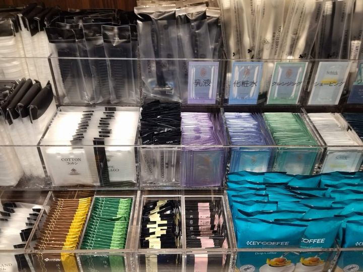 クレンジングや化粧水、乳液、綿棒、ヘアゴム、歯ブラシ、カミソリ、シェービングクリーム、ボディタオルなども、フロント階にあるアメニティバーでそろい自由に使うことができます。