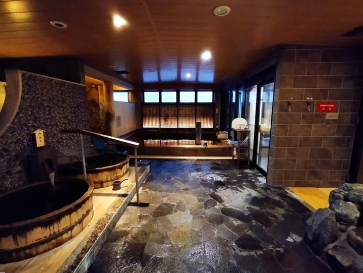 温泉が湧いているということは、もちろん男女別の大浴場も備わっています。単純泉のとろりとした肌感をもった単純泉が心地好いこと。岩風呂や檜風呂、樽風呂などに加えて露天風呂も備わり、ドライサウナとミストサウナが完備されているところも高ポイント! 火照った体は水風呂でクールダウン。ととのいイスがしっかりあるのもさすがです!