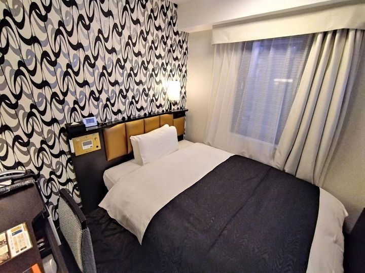 140㎝幅のダブルベッドが配されたスタンダードルームは約11平方メートル。もちろんベッドは、アパホテルオリジナルのクラウドフィット。VODも見放題で楽しめます。