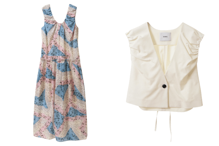 左から:ドレス¥30,800、ジレ¥29,700(共にコエル)