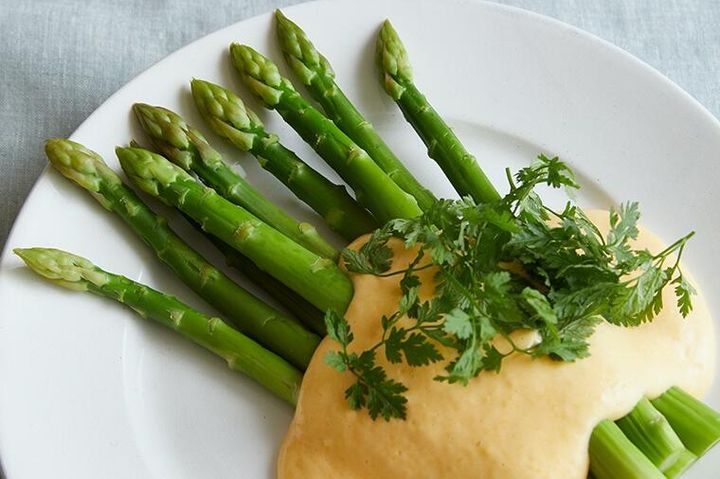 □卵黄のソースが素材を引き立てる“アスパラガスの前菜”