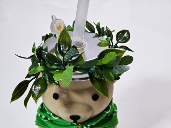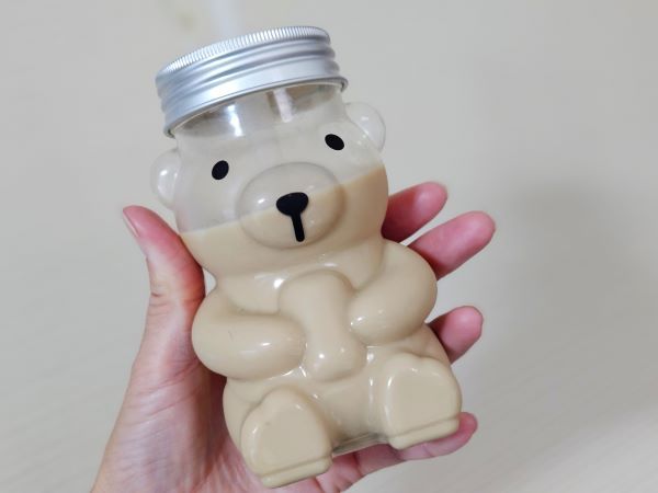 可愛いクマさんのボトルに、ドリンクが入っています(クマボトルはコールドドリンク専用です)。