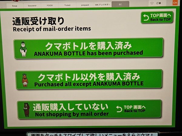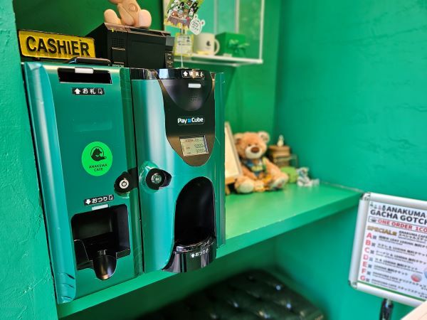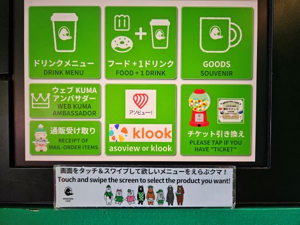支払いは、グリーンにカラーリングした機械で清算できます。現金、電子決済のどちらも対応可。レシートはクマさんに渡すので、忘れずに取りましょう。