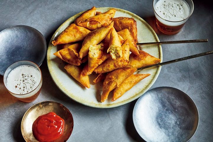 インドのおやつが、春巻きの皮で手軽に作れます。