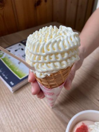 名残惜しみつつも、白い宝石はお口の中へ。 甘い…甘い…、そのあとサラっとのど奥へと消えてゆく。 さくさくコーンとの相性も抜群である!